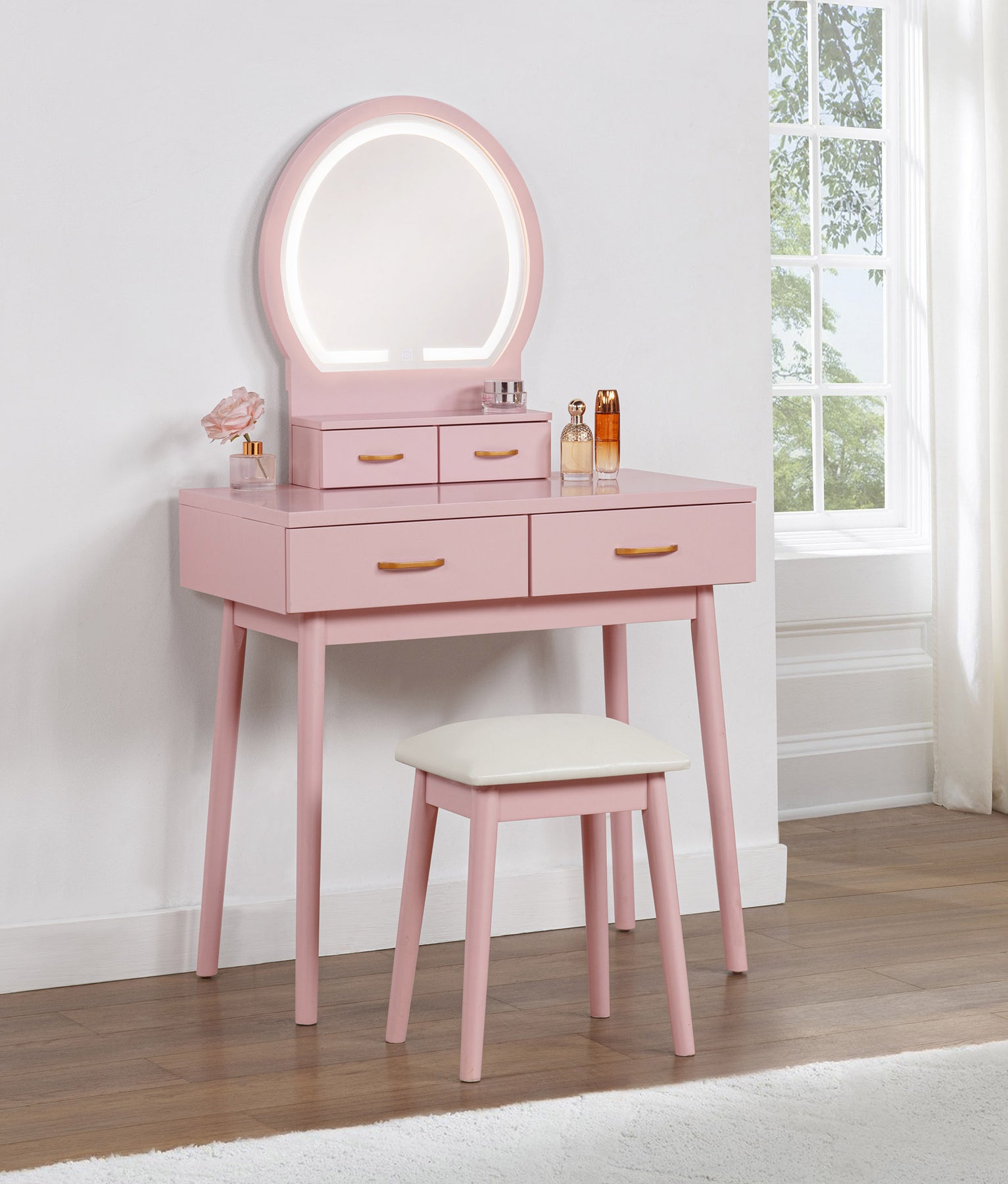 - Wood Vanity Set w/ LED Mirror Light & Drawers